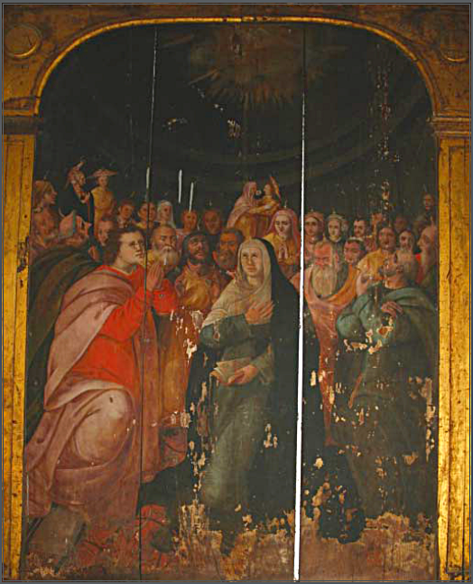 A tábua “Pentecostes” é uma das novidades recenseada, conta-se a identificação desta singular datada do século XVI tardio com a Descida do Espírito Santo sobre a Virgem Maria e os Apóstolos, esquecida e em mau estado de conservação. A pintura ostenta a primitiva estrutura retabular, mostra especificidades de estilo e uma inesperada largueza de composição, pois reúne em torno da Virgem Maria, ladeada por São João Evangelista e São Pedro, vinte e oito figuras dispostas em vários planos dentro de um espaço clássico de planta centralizada que se inspira no Panteão de Roma. Esse grupo integra os apóstolos e discípulos de Cristo juntamente com personagens contemporâneas entre eles casais de nobres estirpe, frades, mercadores, um berbere, e até três figuras asiáticas com trajes e chapéus nipónicos. Tudo revela artifícios de uma cultura artística invejável, formatada por experiência viageira. A composição reúne quatro dezenas de figuras, trajando à época, a receberem as línguas de fogo em torno da Virgem Maria e dos santos apóstolos pedro e João, entre elas figuras nobres, burgueses, clérigos, mercadores, mouriscos e, ainda, três personagens de japoneses com os seus típicos trajes orientais. Este pormenor, de todo inesperado, torna a movimentada composição pintada para esta confraria transmontana num raro testemunho da vertente ecumenista da Contra-reforma católica, através de uma interpretação livre que integra vários povos e culturas sob o halo luminoso do Espírito santo.